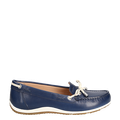 Jugendliche Leichtigkeit kombiniert mit traditioneller Form und Art. Das tiefe, warme Blau kommt dank des hochwertigen Glattleders hervorragend zur Geltung und bietet einen wunderschönen Untergrund für die cremeweiße Schleifenapplikation. Der klassisch, sportliche Schnitt der Mokassins wird von der welligen Sohle noch unterstützt und verleiht diesem Modell eine edle, schale Form. Perfekt für die gepflegte Freizeit!