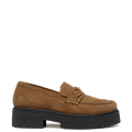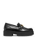 - Wechselfußbett, für Einlagen geeignet, Innensohle aus Leder (atmungsaktiv, stoßdämpfend), Plateausohle vorn 35 mm, Blockabsatz, Loaferapplikation mit Metallapplikation (goldfarben), atmungsaktiv